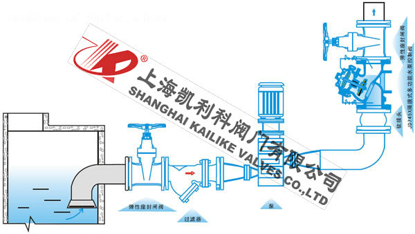 JD745X多功能水泵控制閥由主閥和調(diào)節(jié)閥及接管系統(tǒng)組成,閥體采用直流式閥體,主閥控制室為膜片式或活塞式的雙控制室結(jié)構(gòu),控制室比一般水力控制閥增加了一個,增加了對主閥的控制功能,實現(xiàn)了對水泵出口的緩慢開啟、全開、緩閉、截止等多功能控制,實現(xiàn)了一個閥門、一次調(diào)節(jié)對水泵出口的多功能控制。