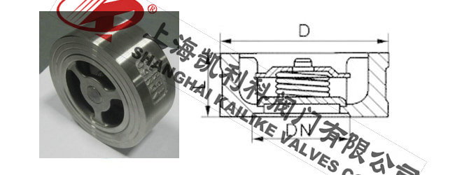 H71H、H71W對夾式止回閥該閥由閥體、閥瓣、彈簧等組成,水平或垂直安裝于管路系統,防止介質倒流,具有結構短、體積小、質量輕;閥瓣關閉快速,水錘壓力小;流道通暢,流體阻力小;動作靈敏,密封性能好。